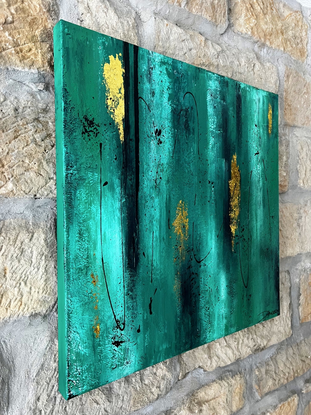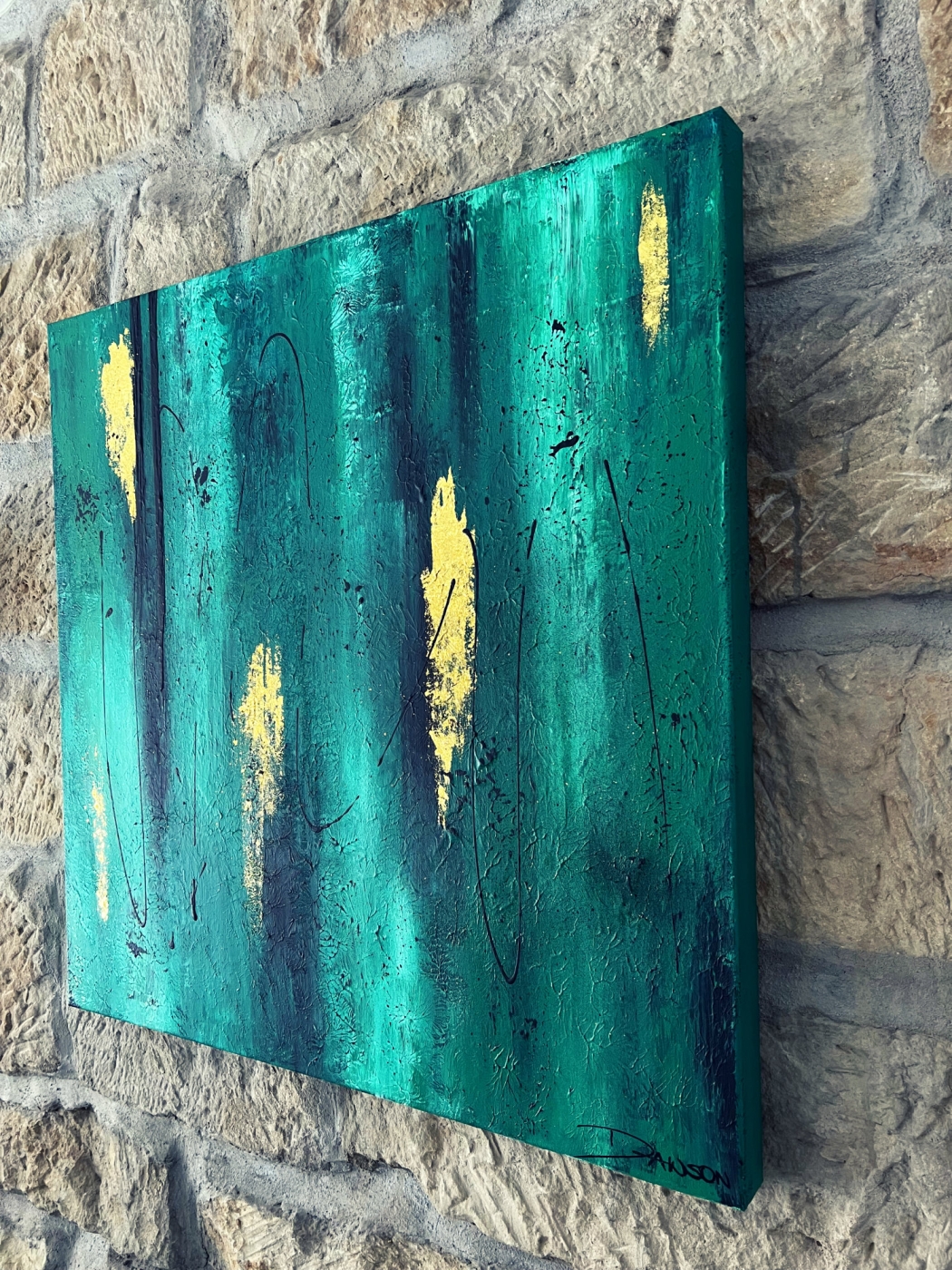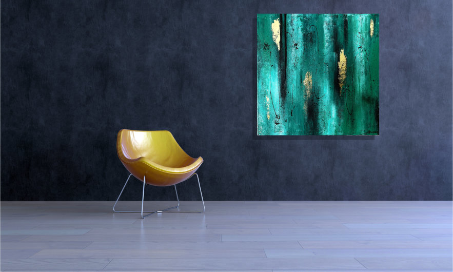 Das abgebildete Acrylbild „green & gold“ besitzt das Format 80 cm x 80 cm. Die Tiefe des Keilrahmens beträgt bei diesem Bild 5 cm, somit hat das Gemälde eine sehr gute plastische Wirkung im Raum. Sie können auch gerne ein ähnliches, noch größeres Bild direkt bei mir in Auftrag geben.